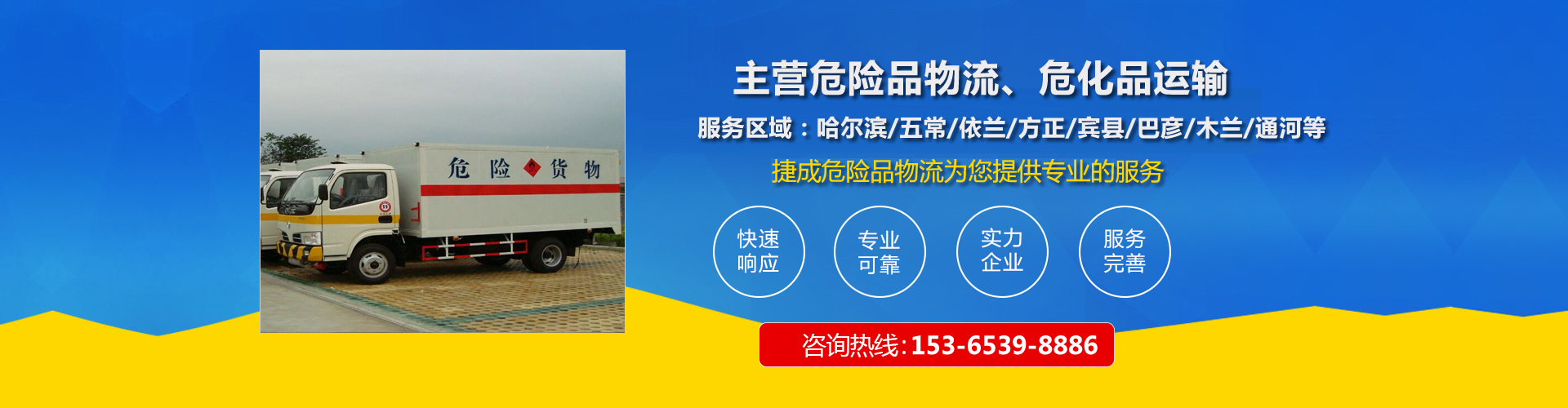 您好,歡迎來到哈爾濱捷成物流有限公司官網!我們為您提供哈爾濱危險品物流公司,哈爾濱危化品物流,哈爾濱危險品運輸等。